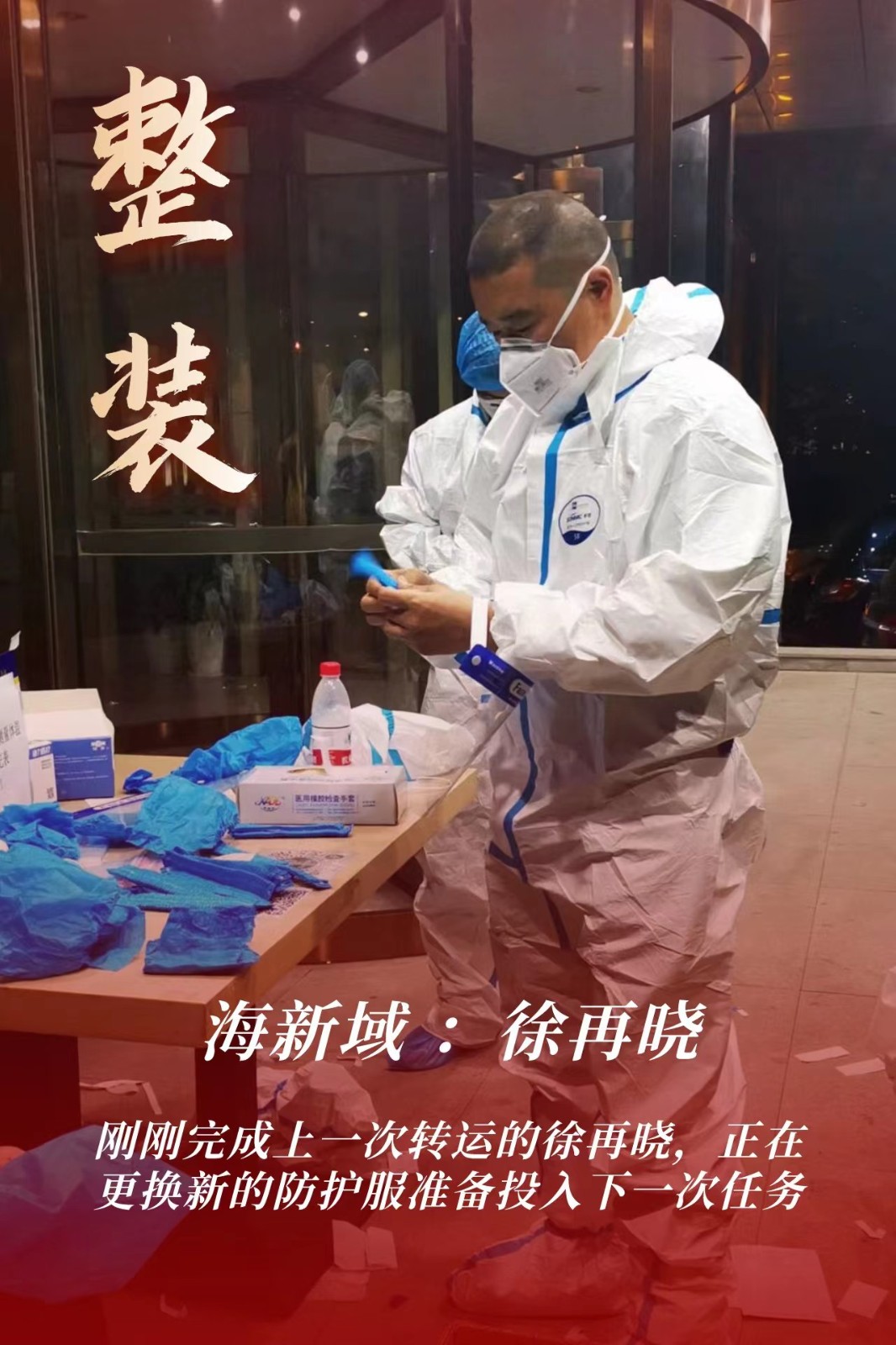 简单收拾行李后,13日晚上徐再晓按时来到了集合地报到,在这里和另外3名来自mksport体育的干部:田硕、侯亦、张世裕汇合,在进行岗前培训后迅速投入到了支援转运专班的工作中。